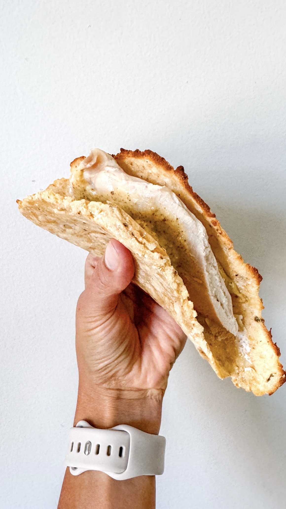 I recently used one as a lunch wrap with turkey and goat cheese and it was so delicious – soft, flavorful, and surprisingly filling. They also work great with: