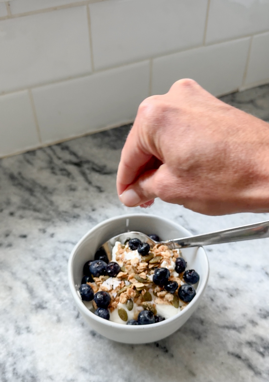 I have this granola almost every afternoon in a yogurt bowl with fresh blueberries and/or banana. It adds crunch and satisfaction without needing oil or sugar. It also works beautifully as a smoothie bowl topper or a simple, handful snack straight from the jar.