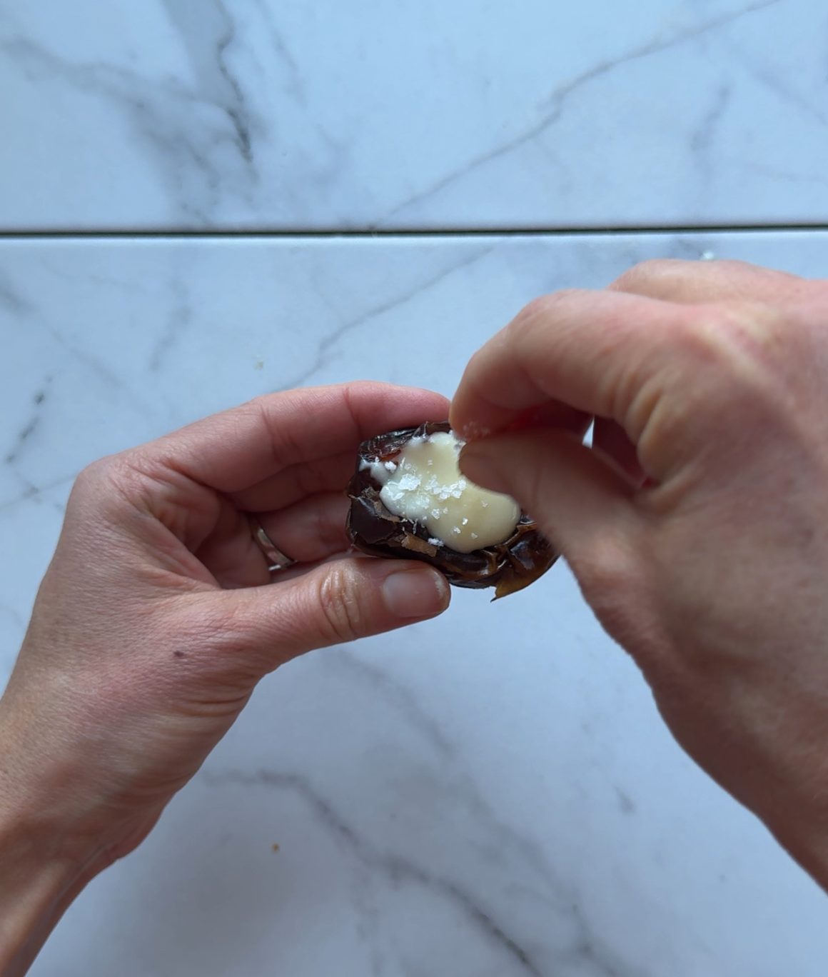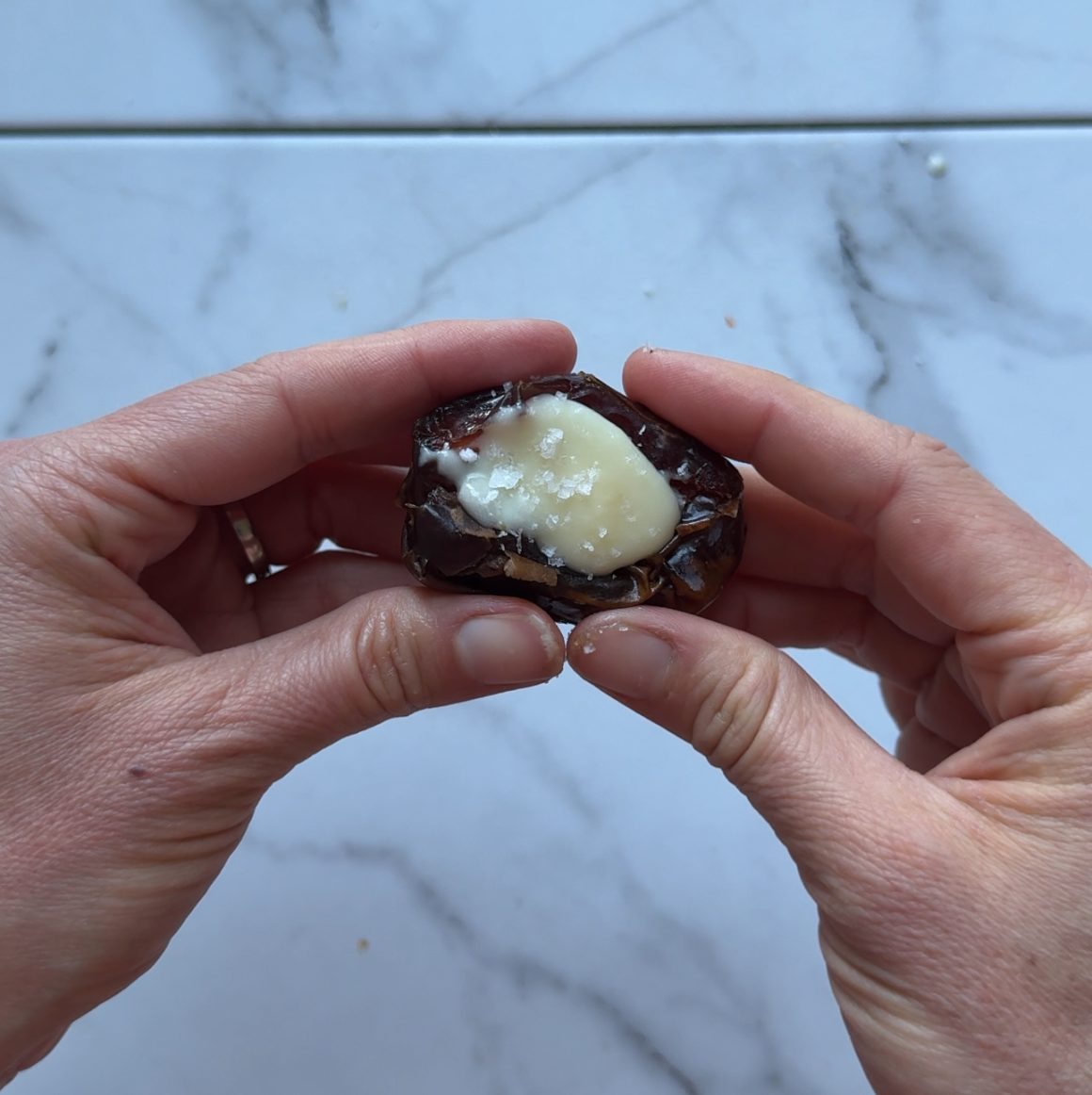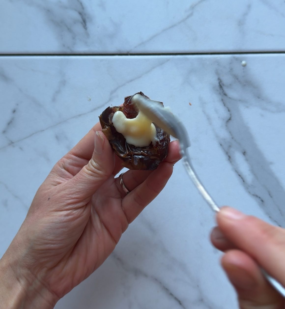 Step 3: Add a teaspoon of the coconut butter and ghee mixture in the middle of the date.